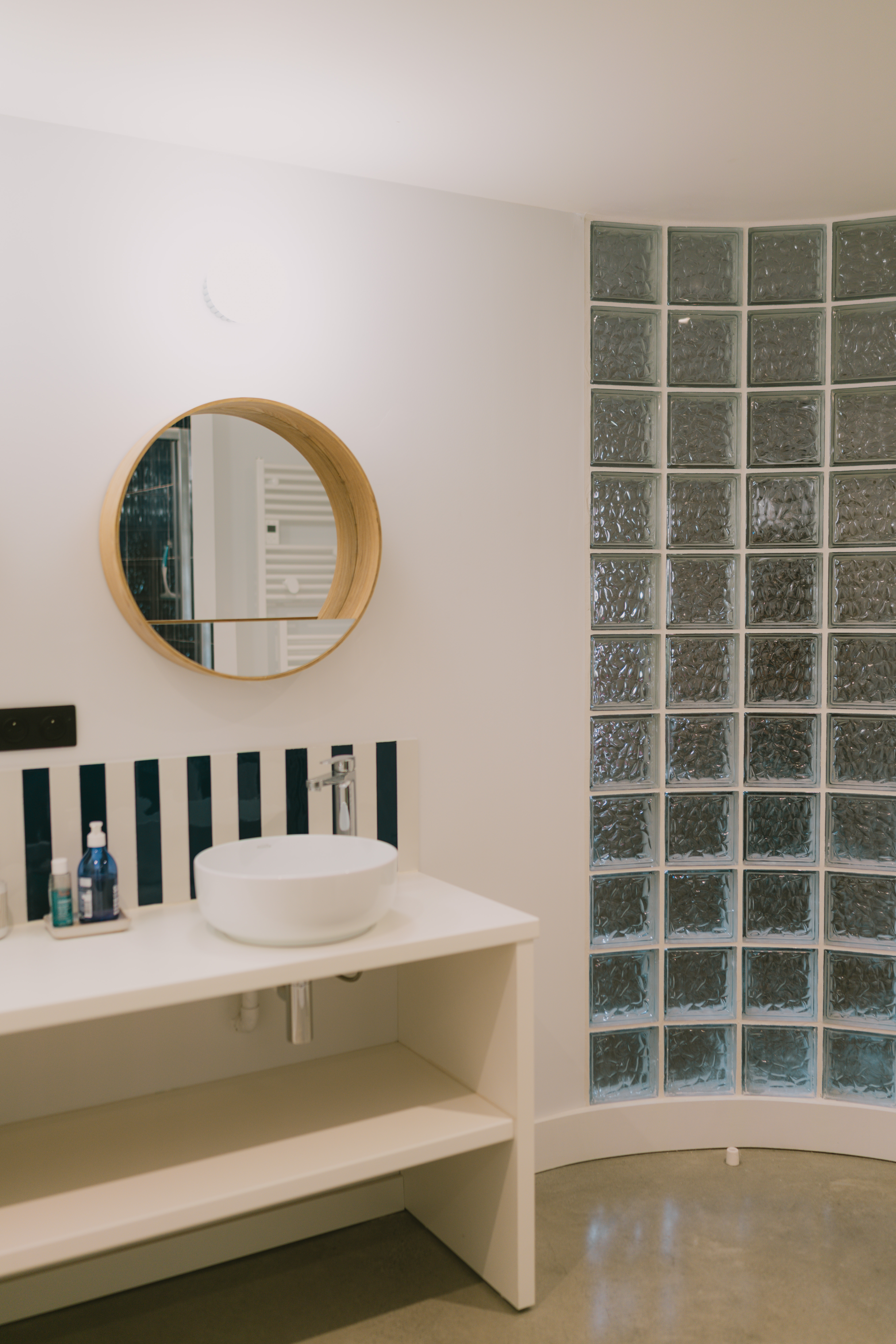 Nous avons imaginé une chambre avec un lit double king size (180×200) et un coin cosy pour un lit simple (90×200), avec sa propre salle de bains, pour coller aux attentes des jeunes parents.