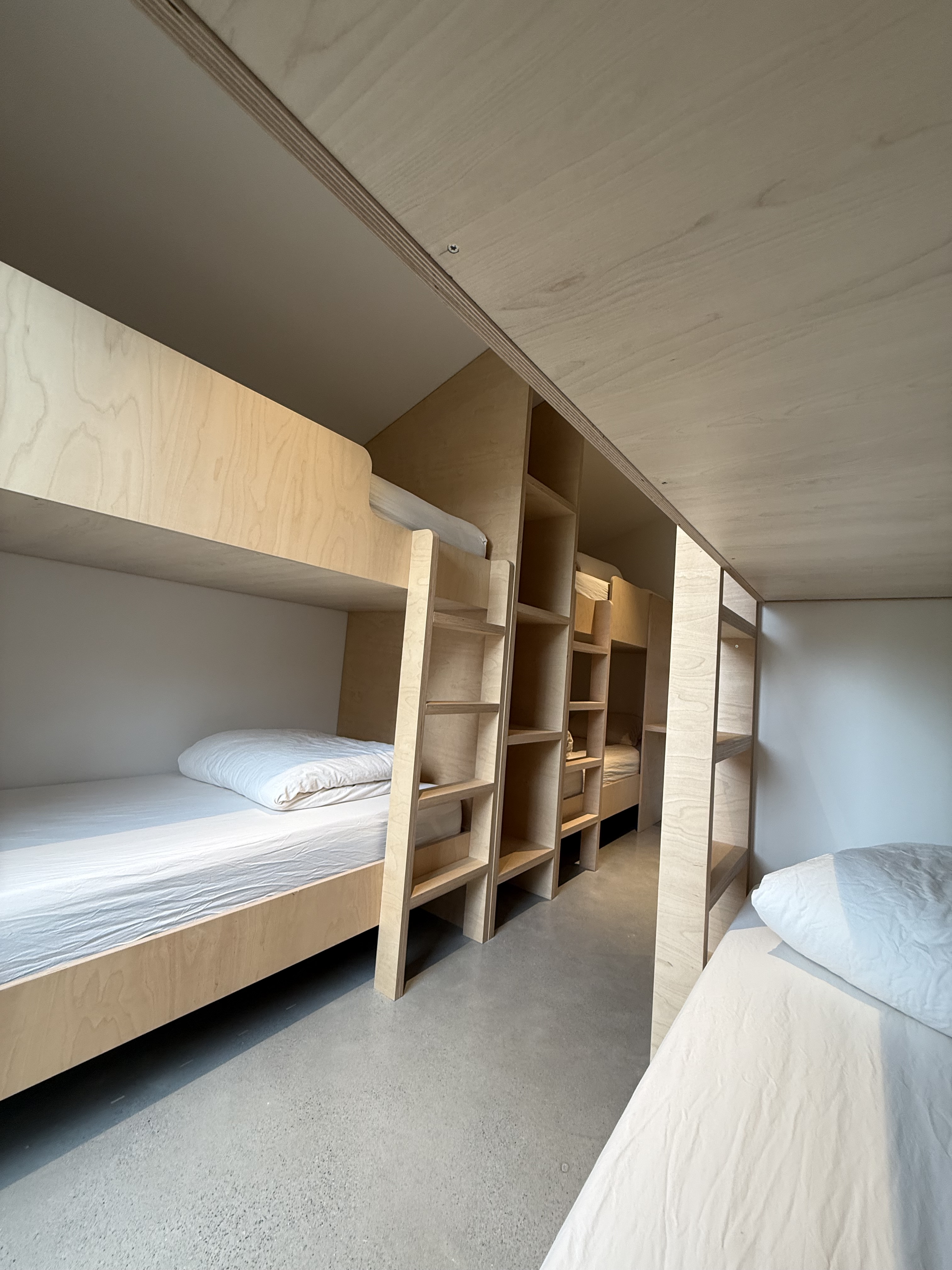 Le dortoir offre couchages et rangements spacieux et posséde sa propre salle de bains avec deux douches.